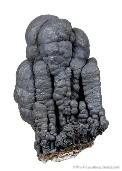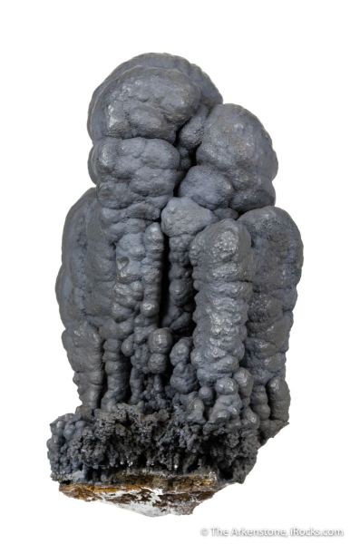 This is a Romanechite from Haiti Mine, Cabezo de San Gines, Cartagena, Murcia, Spain. Elongated and stacked botryoidal columns of romanechite are gracefully arranged in this unique piece from the manganese deposits in Cartegena, Spain.Data last checked on 3rd Feb 2026 - specimen may no longer be available