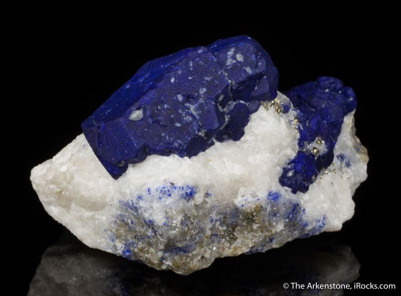 This is a Lazurite on calcite and pyrite from Ladjuar Medam, Sar-e Sang, Koksha Valley, Badakhshan Province, Afghanistan. Stunning lazurite specimen with multiple clusters of ultramarine blue lazurite on white calcite marble!Data last checked on 26th Jan 2026 - specimen may no longer be available