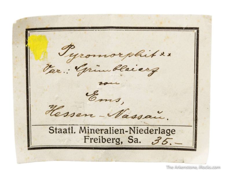 Pyromorphite (circa 1830's) (Ref: MUN16B-47)