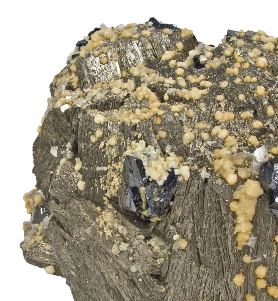 This is a Pyrrhotite With Sphalerite and Siderite from Trepca, Yugoslavia. Composed of unusually thickly-interwoven, lustrous, brassy yellow crystals of pyrrhotite to 6.5 cm on edge, this specimen also is decorated by a few lustrous black sphalerite crystals to 1 cm across.Data last checked on 30th Jan 2026 - specimen may no longer be available