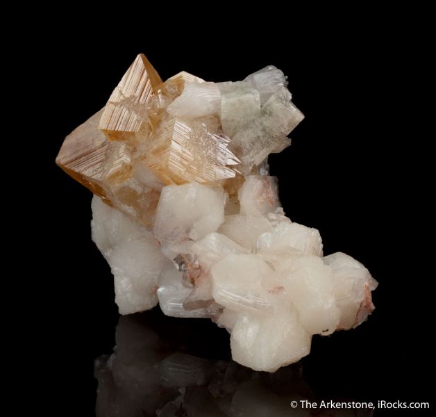 This is a Powellite on Stilbite from Jalgaon, Maharashtra State, India. A starburst spray atop the pedestal of stilbite features several extremely gemmy, vivid honey-colored powellite crystals to 2 cm on edge.Data last checked on 3rd Feb 2026 - specimen may no longer be available
