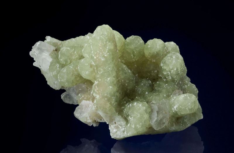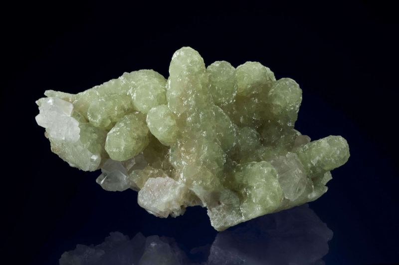 This is a Prehnite Cast After Anhydrite from Prospect Park Quarry, Prospect Park, Passaic Co., New Jersey, USA. This large, 3-dimensional prehnite specimen is highlighted by a very lustrous and translucent, light apple-green finger that rises 5 cm in height.Data last checked on 28th Jan 2026 - specimen may no longer be available
