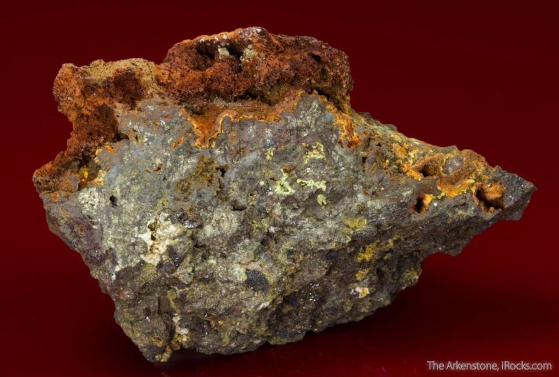 This is a Ojuelaite with Beudantite, Cerussite, and Goethite from Ojuela mine, Mapimi, Durango, Mexico. This specimen of ojuelaite, a rare, zinc iron arsenate hydroxide hydrate, originates from the type locality: the Ojuela mine, Mapimi, Durango, Mexico.Data last checked on 20th Jan 2026 - specimen may no longer be available