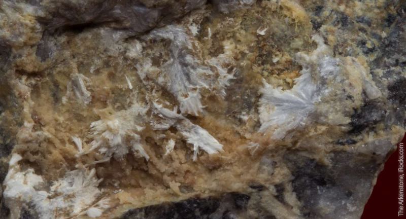 This is a Manganohornesite (type locality) with Hausmannite and Dolomite from Langban mine, Filipstad, Varmland, Sweden. White tufts and sheaves of acicular manganohornesite crystals to 2mm are pronouncedly scattered on a fracture surface of this piece from the type locality.Data last checked on 23rd Feb 2026