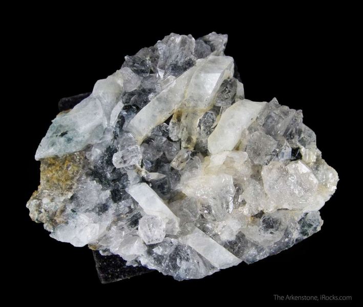 This is a Whitlockite from Big Fish River, Dawson Mining District, Yukon, Canada. Thumbnail with several colorless to white, translucent to transparent, tabular, complete to partial crystals of bobdownsite to 1.0cm with excellent pearlescent to vitreous luster.Data last checked on 27th Feb 2026 - specimen may no longer be available
