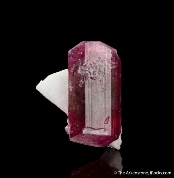This is a Liddicoatite, Albite from Ampatsikahitra Mine, Sahatany, Madagascar. A very appealing, doubly terminated, 3.6 cm long, cranberry-pink Liddicoatite-Elbaite Tourmaline crystal from Madagascar juxtaposed to a snow white Albite crystal to provide a beautiful accent!Data last checked on 1st Feb 2026