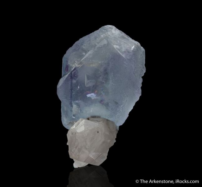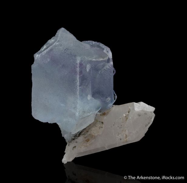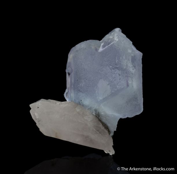 This is a Fluorite (spinel-twinned) with Quartz from Yaogangxian Mine, Yizhang Co., Chenzhou, Hunan, China. A large, impressive, pale blue spinel twinned Fluorite crystal sits atop a sliver of Quartz matrix in this impressive piece from the famed Yaogangxian Mine in China.Data last checked on 11th Feb 2026 - specimen may no longer be available