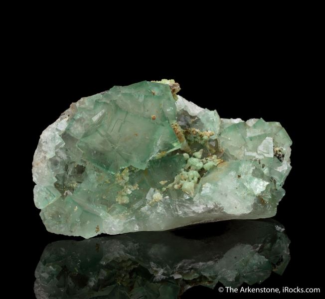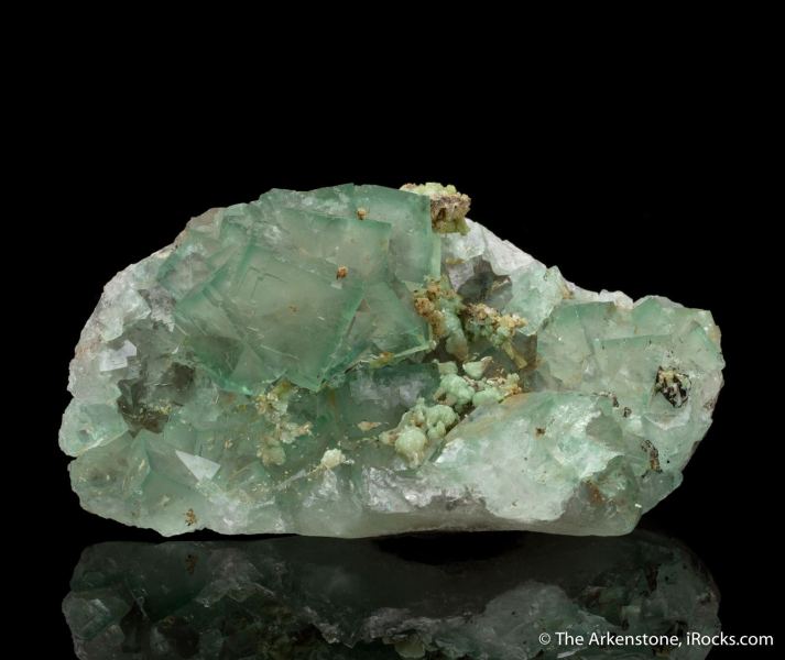 This is a Fluorite with Adamite from Xianghuapu Mine, Chenzhou, Hunan Province, China. An elongated plate hosting numerous, transparent to translucent cubes of light green fluorite with, of all things, adamite!Data last checked on 26th Jan 2026 - specimen may no longer be available