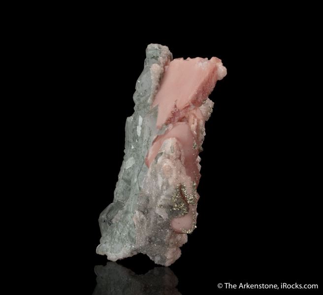 This is a Rhodochrosite on Quartz from Wutong Mine, Liubao, Cangwu Co., Wuzhou, Guangxi, China. This very elegant and very unusual Chinese Rhodochrosite specimen consists of several large, flat, greenish-tinted Quartz crystals along with platy, drusy, pink Rhodochrosite.Data last checked on 27th Feb 2026 - specimen may no longer be available