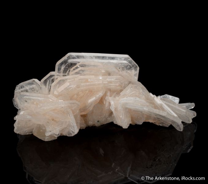 This is a Fluorapophyllite from Fengjiashan Mine (Daye copper mine), Daye Co., Huangshi, Hubei, China. This is a textbook cluster of bladed, tabular Fluorapophyllite crystals from the Fengjiashan Mine mine in China that have a pinkish hue to them.Data last checked on 22nd Jan 2026