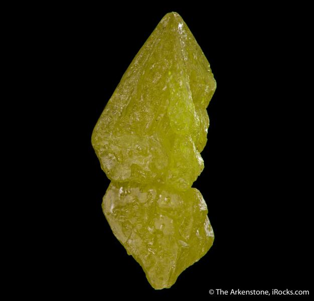 This is a Sulfur from El Desierto mine, San Pablo de Napa, Daniel Campos Province, Potosi, Bolivia. A very large single crystal of sulfur, complete all around, showing deep patterns of ingrown faces - a "hoppering" effect in crystals.Data last checked on 1st Feb 2026