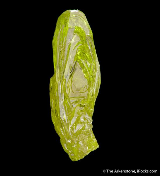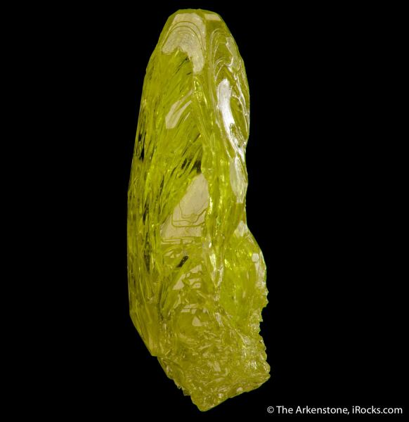 This is a Sulfur from El Desierto mine, San Pablo de Napa, Daniel Campos Province, Potosi, Bolivia. Sulfur from this deposit tends to form sharp, elongated crystals but this unusual specimen is a biologic-looking and yet complex single crystal with a naturally rounded termination.Data last checked on 28th Jan 2026 - specimen may no longer be available