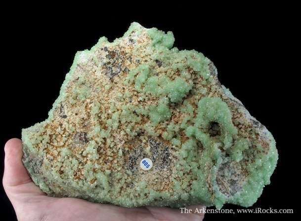 This is a Smithsonite Var. Cuprian from Tsumeb Mine, Tsumeb, Otjikoto Region, Namibia. What can you say about a 17 cm plate that is completely covered on one side by jillions of lustrous, mint green 1 mm Cuprian Smithsonites that look like fresh green snow?Data last checked on 28th Jan 2026 - specimen may no longer be available