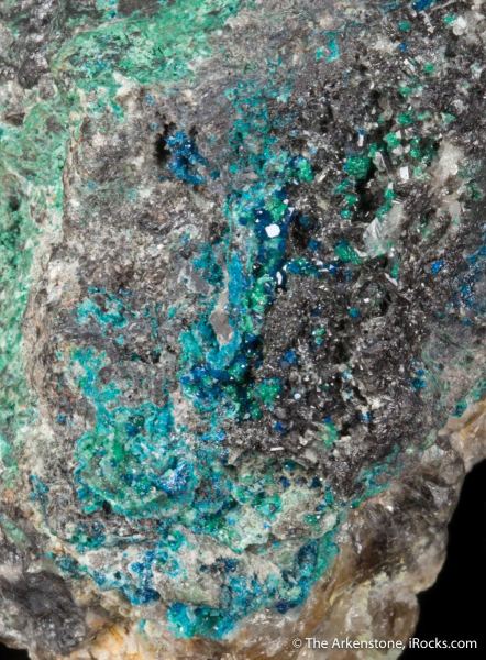 This is a Boleite, Brochanite, Anglesite and Paralaurionite from Mammoth-Saint Anthony Mine, Tiger, Pinal Co., Arizona, USA. A great complex combination specimen from Tiger with a variety of mineral species and textures!Data last checked on 28th Jan 2026 - specimen may no longer be available