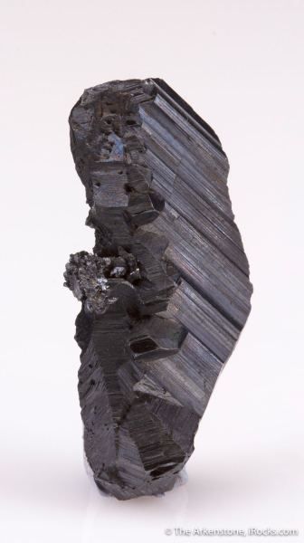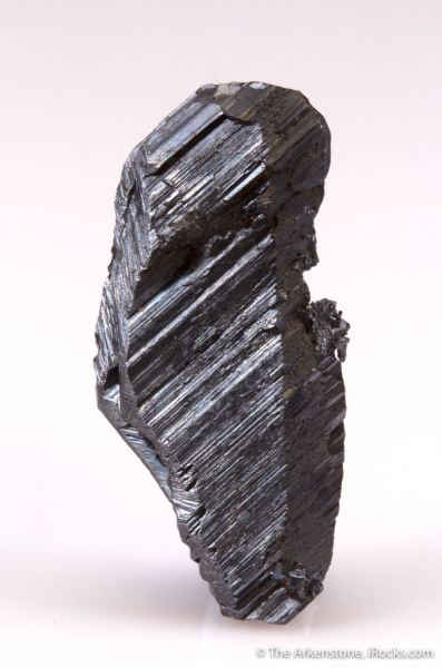 This is a Chalcocite from Tsumeb Mine, Tsumeb, Oshikoto Region, Namibia. This gun-metal gray, beautifully striated single Chalcocite crystal from Tsumeb is just about as good as it gets from this mine where chalcocite is strangely rare despite the vast copper there.Data last checked on 28th Jan 2026 - specimen may no longer be available