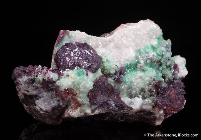 This is a Cuprite with Dolomite and Malachite from Tsumeb Mine, Tsumeb, Oshikoto Region, Namibia. A stunning specimen displaying Christmas colors, with brilliant red Cuprite clusters of unusual quality for Tsumeb, growing against contrast of white Dolomite and green-tinted, Malachite included Dolomite.Data last checked on 5th Feb 2026 - specimen may no longer be available