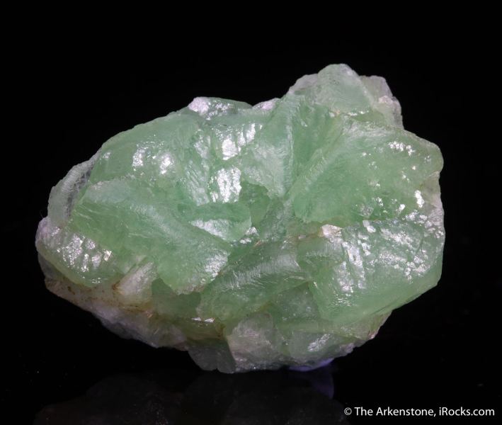 This is a Smithsonite var. Cuprian Smithsonite from Tsumeb Mine, Tsumeb, Oshikoto Region, Namibia. Large, lustrous and translucent to almost transparent, intergrown, bright apple-green Cuprian Smithsonite rhombs form a superb miniature from the Tsumeb Mine.Data last checked on 15th Feb 2026 - specimen may no longer be available