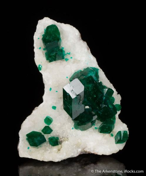 This is a Dioptase on Calcite from Tsumeb Mine, Tsumeb, Namibia. A very important dioptase miniature, this has robust crystals of the finest color and isolated on the best matrix.Data last checked on 15th Feb 2026 - specimen may no longer be available