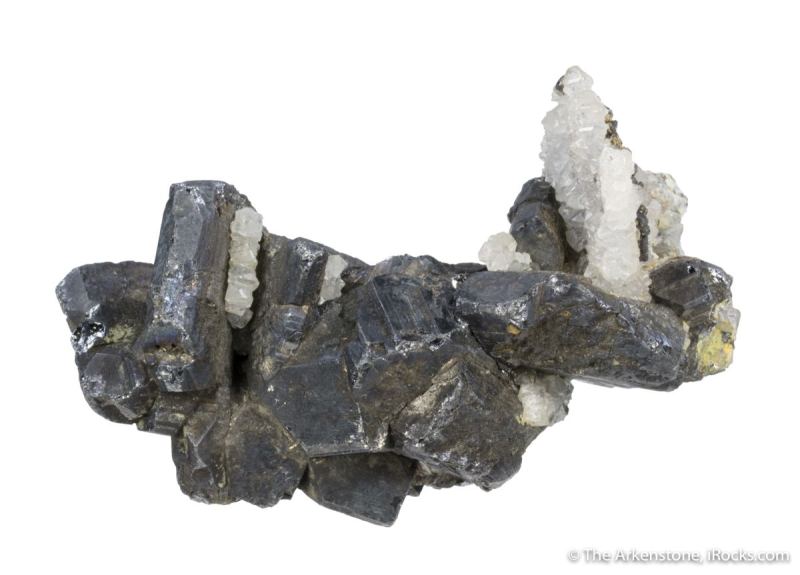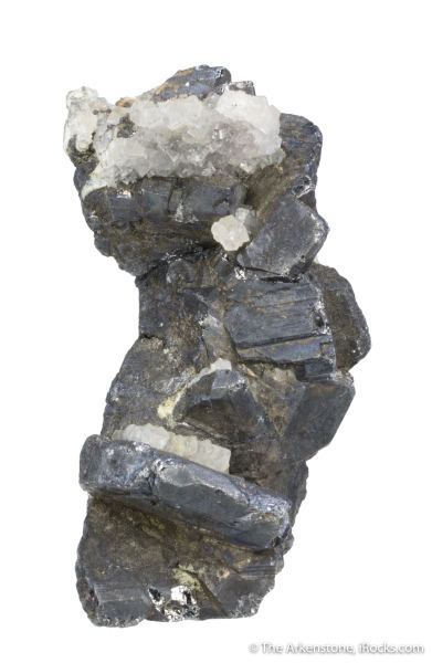 This is a Bournonite (rare locality) from Wheel Boys, Endellion, Cornwall, England. A curving stack of slightly lustrous, black crystals of bournonite, to 2.3 cm across, are aesthetically emplaced on a thin layer of drusy quartz.Data last checked on 1st Mar 2026