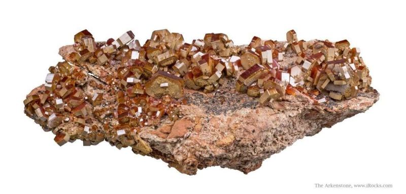 This is a Vanadinite from ACF Mine (incl. Coud'a shaft; Coudia shaft), Mibladene (Mibladen; Mibladan; Miblanden), Upper Moulouya lead district, Midelt, Khenifra Province, Meknes-Tafilalet Region, Morocco. From the 2009 find, noted for its thick, robust crystals; a large specimen with crystals to 2.0 cm in size.Data last checked on 23rd Feb 2026