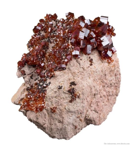 This is a Vanadinite from ACF Mine (incl. Coud'a shaft; Coudia shaft), Mibladene (Mibladen; Mibladan; Miblanden), Upper Moulouya lead district, Midelt, Khenifra Province, Meknes-Tafilalet Region, Morocco. From the 2009 find, noted for its thick, robust crystals; a large specimen with crystals to 1.6 cm in size.Data last checked on 28th Jan 2026 - specimen may no longer be available