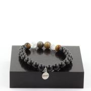 Tiger's Eye from South Africa + Yellow Agate + Black Agate 8 mm beads Bracelet.