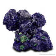 Sparkling deep blue crystals of azurite across the front of this velvety chatoyant green botryoidal crystallized malachite matrix. In great condition.From: Weinrich Minerals