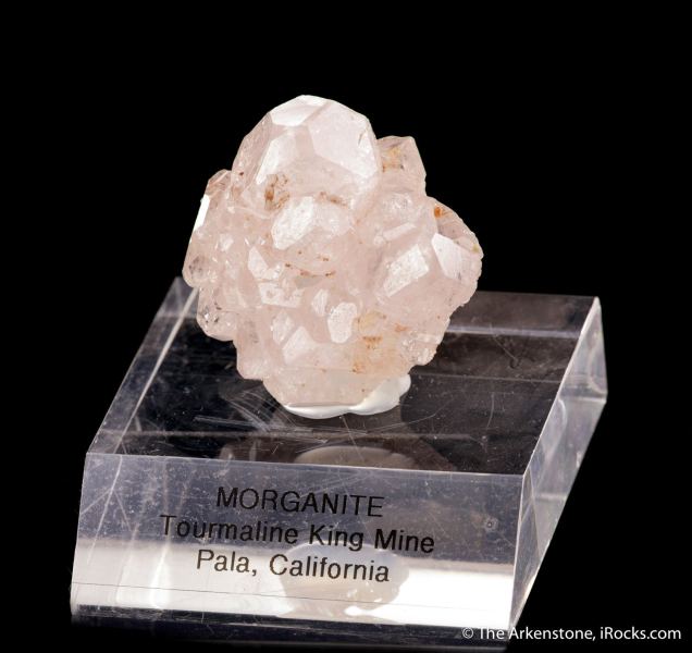 This is a Beryl var. Morganite (very early 1900s) from Tourmaline King Mine, Pala, San Diego Co., California, USA. An antique and pretty cluster of sharp morganite crystals, showing classic rich color, from one of the older mines in the San Diego County tourmaline pantheon that dates back to the late 1800s and early 1900s.Data last checked on 23rd Feb 2026 - specimen may no longer be available