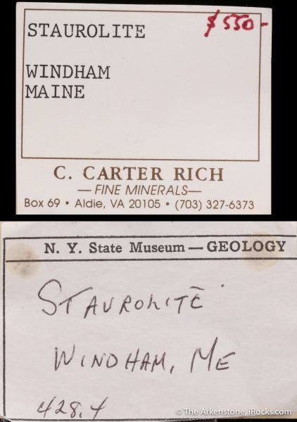 This is a Staurolite from Windham, Cumberland Co., Maine, USA. Here is an old-time Staurolite cluster nicely set on, and in, a schist matrix from the classic Cook Road Staurolite locality in Maine.Data last checked on 11th Feb 2026