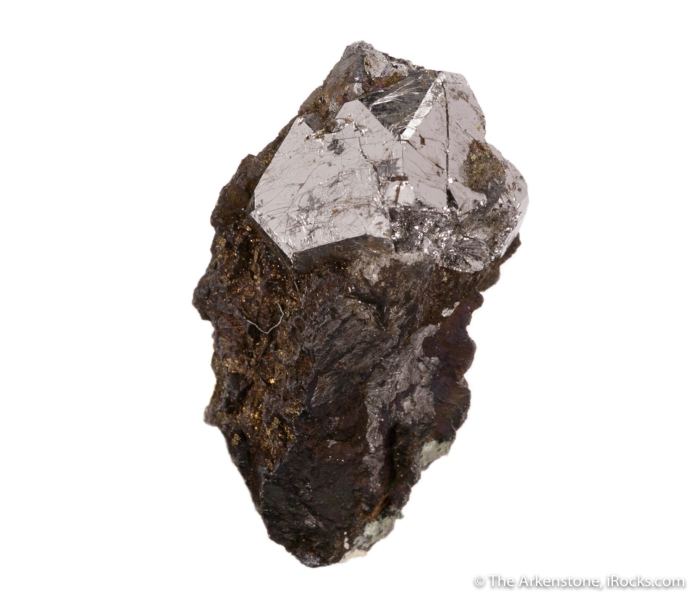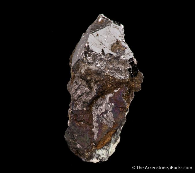This is a Sperrylite from Oktyabrsky Mine, Noril'sk, Krasnoyarsk Krai, Russia. A significant thumbnail display specimen of the magnificent platinum group mineral sperrylite, featuring a sharp and shiny crystal just perfectly perched on a pedestal of matrix.Data last checked on 23rd Feb 2026 - specimen may no longer be available