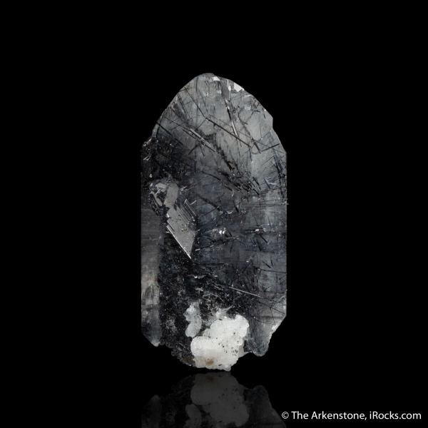 This is a Euclase with Schorl inclusions from Chia mine, Sao Jose da Safira, Minas Gerais, Brazil. This 4.6 cm tall heavily included euclase crystal is nearly black due to the dense schorl inclusions throughout the entire large euclase crystal.Data last checked on 20th Jan 2026 - specimen may no longer be available