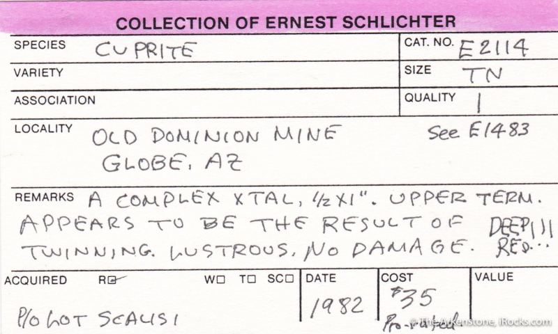 This is a Cuprite from Old Dominion Mine, Globe-Miami Mining Dist., Gila Co., Arizona, USA. This impressive cuprite crystal cluster is a full large thumbnail size and it is blood-red when backlit even moderately, cherry-red with strong backlighting.Data last checked on 30th Jan 2026 - specimen may no longer be available