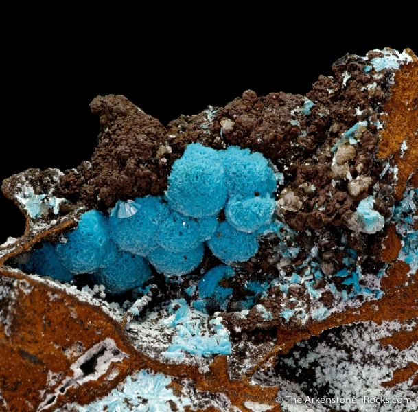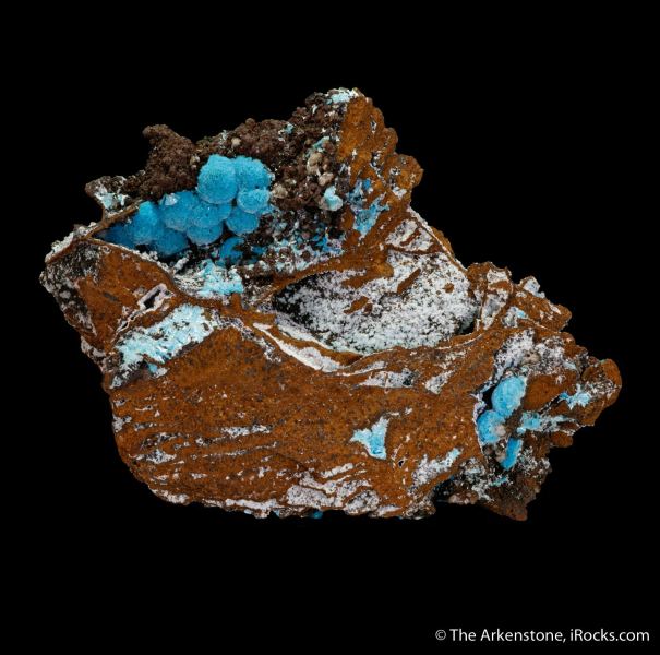 This is a Aurichalcite from Uludağ Mine, Bursa Prov., Turkey. A great large cabinet specimen features bright blue-green radial sprays and balls of aurichalcite up to 1 cm across, scattered on goethite matrix.Data last checked on 11th Feb 2026 - specimen may no longer be available