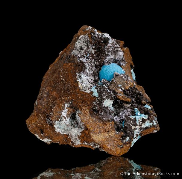 This is a Aurichalcite from Uludağ Mine, Bursa Prov., Turkey. This small cabinet aurichalcite features an attractive 1.5cm blue-green ball nestled in a vug lined with smaller white aurichalcite blades.Data last checked on 28th Jan 2026 - specimen may no longer be available