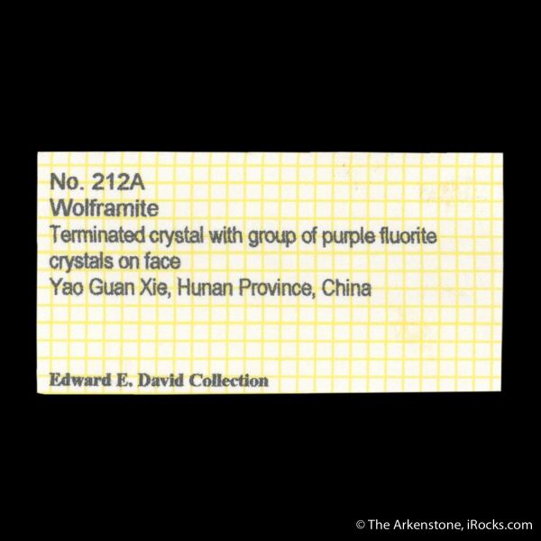 This is a Ferberite with Fluorite from Yaogangxian Mine, Yizhang Co., Chenzhou, Hunan, China. This is an old friend, one of the oldest Chinese minerals from my own personal mineral collection of Chinese-only specimens.Data last checked on 28th Jan 2026