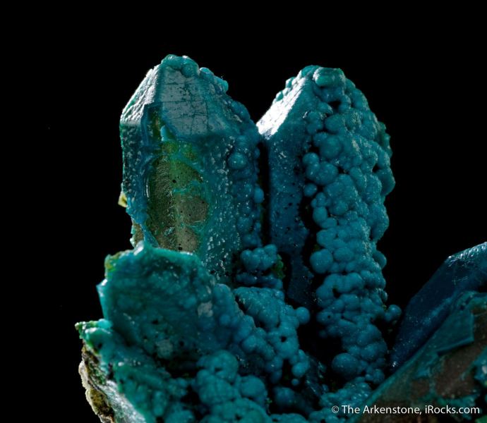 Quartz on Chrysocolla ps. Malachite ps. Azurite