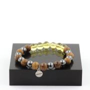 Ruby from Mogok, Burma, Myanmar + Yellow Agate + Hematite + Howlite Bracelet 8 mm Beads.